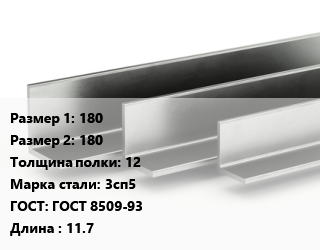 Уголок горячекатаный 180х180х12 Сталь: 3сп5 ГОСТ: ГОСТ 8509-93 L=11.7