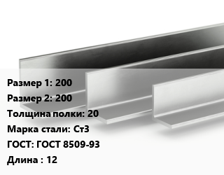 Уголок горячекатаный 200х200х20 Сталь: Ст3 ГОСТ: ГОСТ 8509-93 L=12, м/д, по запросу цена от 108 599 Р / т, где купить, условия доставки в Могилеве и Могилёвской области