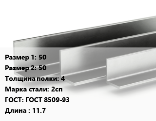 Уголок горячекатаный 50х50х4 Сталь: 2сп ГОСТ: ГОСТ 8509-93 L=11.7