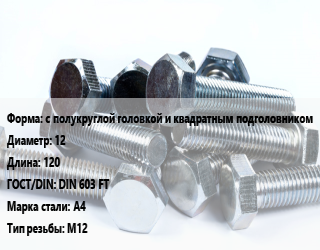 Болт с полукруглой головкой и квадратным подголовником 12х120 DIN 603 FT Сталь: А4 М12, цену уточнять, кг цена от 157.08 Р / кг, где купить, условия доставки в Могилеве и Могилёвской области