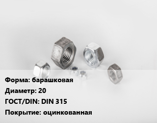 Гайка барашковая D=20 DIN 315 оцинкованная, упаковка 100 шт, Китай цена от 6 027 Р / кг, где купить, условия доставки в Могилеве и Могилёвской области