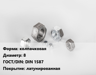 Гайка колпачковая D=8 DIN 1587 латунированная, шт цена от 17.14 Р / кг, где купить, условия доставки в Могилеве и Могилёвской области