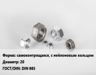 Гайка самоконтрящаяся, с нейлоновым кольцом D=20 DIN 985