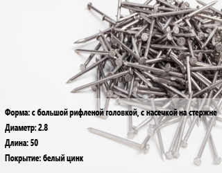 Гвоздь с большой рифленой головкой, с насечкой на стержне 2.8х50 белый цинк
