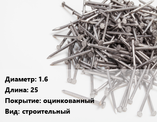 Гвоздь 1.6х25 оцинкованный строительный, РечМз, по запросу, кг цена от 137.74 Р / кг, где купить, условия доставки в Могилеве и Могилёвской области