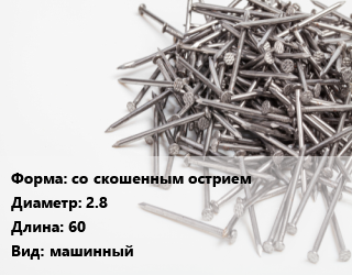 Гвоздь со скошенным острием 2.8х60 машинный, РечМз, чертеж 7811-7169, кг цена от 184.54 Р / кг, где купить, условия доставки в Могилеве и Могилёвской области