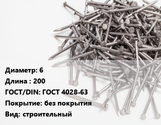 Гвоздь 6х200 ГОСТ: ГОСТ 4028-63 без покрытия строительный