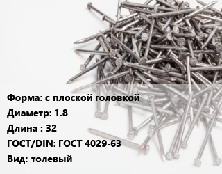 Гвоздь с плоской головкой 1.8х32 ГОСТ: ГОСТ 4029-63 толевый