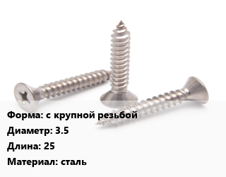 Саморез с крупной резьбой D=3.5 L=25 сталь, упаковка 2000 шт цена от 523.8 Р / кг, где купить, условия доставки в Могилеве и Могилёвской области