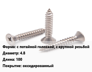 Саморез с потайной головкой, с крупной резьбой D=4.8 L=100 оксидированный