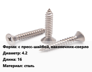 Саморез с пресс-шайбой, наконечник-сверло D=4.2 L=16 сталь