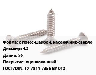 Саморез с пресс-шайбой, наконечник-сверло D=4.2 L=56 оцинкованный ГОСТ: ТУ 7811-7356 BY 012