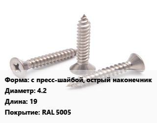 Саморез с пресс-шайбой, острый наконечник D=4.2 L=19 RAL 5005, шт цена По запросу где купить, условия доставки в Могилеве и Могилёвской области