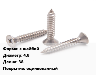 Саморез с шайбой D=4.8 L=38 оцинкованный