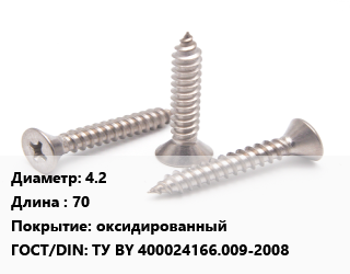 Саморез 4.2 L=70 оксидированный ГОСТ: ТУ BY 400024166.009-2008, упаковка 1000 шт, для металла, РМЗ цена от 815.69 Р / кг, где купить, условия доставки в Могилеве и Могилёвской области
