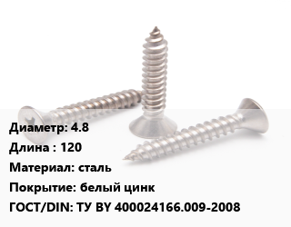 Саморез 4.8 L=120 сталь белый цинк ГОСТ: ТУ BY 400024166.009-2008