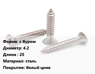 Саморез с буром D=4.2 L=25 сталь белый цинк
