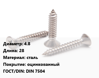 Саморез 4.8 L=28 сталь оцинкованный ГОСТ: DIN 7504