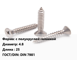 Саморез с полукруглой головкой D=4.8 L=25 ГОСТ: DIN 7981