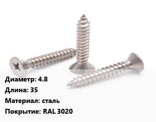 Саморез 4.8 L=35 сталь RAL 3020, шт цена от 2.82 Р / кг, где купить, условия доставки в Могилеве и Могилёвской области