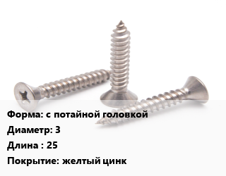 Саморез с потайной головкой D=3 L=25 желтый цинк, упаковка 70 шт цена от 67.5 Р / кг, где купить, условия доставки в Могилеве и Могилёвской области