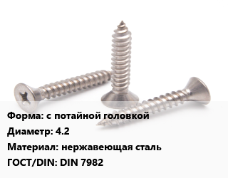 Саморез с потайной головкой D=4.2 нержавеющая сталь ГОСТ: DIN 7982