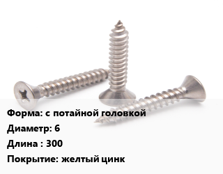 Саморез с потайной головкой D=6 L=300 желтый цинк, упаковка 460 шт цена от 1 742 Р / кг, где купить, условия доставки в Могилеве и Могилёвской области