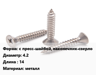 Саморез с пресс-шайбой, наконечник-сверло D=4.2 L=14 металл