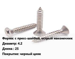 Саморез с пресс-шайбой, острый наконечник D=4.2 L=25 черный цинк
