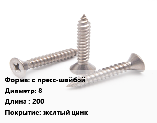 Саморез с пресс-шайбой D=8 L=200 желтый цинк, шт цена от 48.6 Р / кг, где купить, условия доставки в Могилеве и Могилёвской области