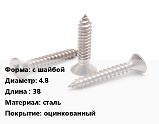Саморез с шайбой D=4.8 L=38 сталь оцинкованный