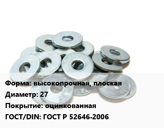 Шайба высокопрочная, плоская D=27 оцинкованная ГОСТ: ГОСТ Р 52646-2006