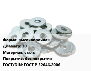 Шайба высокопрочная D=30 сталь без покрытия ГОСТ: ГОСТ Р 52646-2006