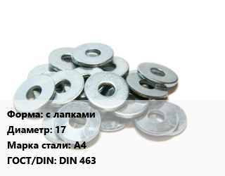 Шайба с лапками D=17 Сталь: А4 ГОСТ: DIN 463, шт цена от 14.03 Р / кг, где купить, условия доставки в Могилеве и Могилёвской области