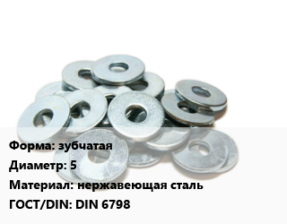 Шайба зубчатая D=5 нержавеющая сталь ГОСТ: DIN 6798, шт цена от 2.54 Р / кг, где купить, условия доставки в Могилеве и Могилёвской области