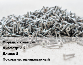 Шуруп с кольцом 2.5х8 оцинкованный, упаковка 100 шт, Китай цена от 36.9 Р / кг, где купить, условия доставки в Могилеве и Могилёвской области