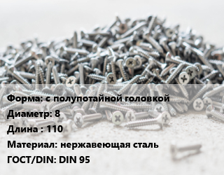Шуруп с полупотайной головкой 8х110 нержавеющая сталь ГОСТ: DIN 95, шт, А4 цена от 188.94 Р / кг, где купить, условия доставки в Могилеве и Могилёвской области