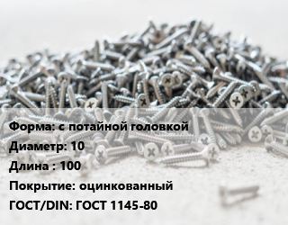 Шуруп с потайной головкой 10х100 оцинкованный ГОСТ: ГОСТ 1145-80, шт цена от 81.9 Р / кг, где купить, условия доставки в Могилеве и Могилёвской области