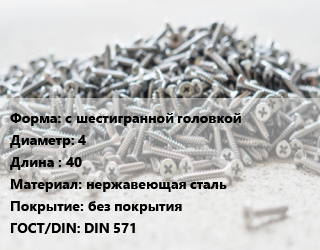 Шуруп с шестигранной головкой 4х40 нержавеющая сталь без покрытия ГОСТ: DIN 571