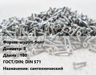 Шуруп шуруп-болт 8х180 ГОСТ: DIN 571 сантехнический