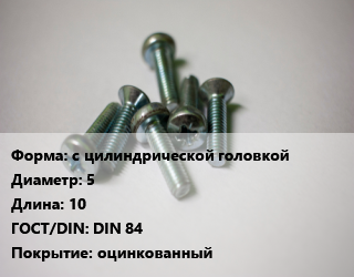 Винт с цилиндрической головкой 5х10 DIN 84 оцинкованный, цена за шт, кг цена от 2.7 Р / кг, где купить, условия доставки в Могилеве и Могилёвской области