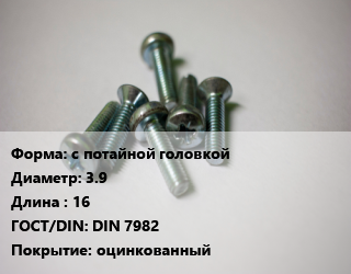 Винт с потайной головкой 3.9х16 DIN 7982 оцинкованный, шлиц Phillips, кг цена от 156.97 Р / кг, где купить, условия доставки в Могилеве и Могилёвской области