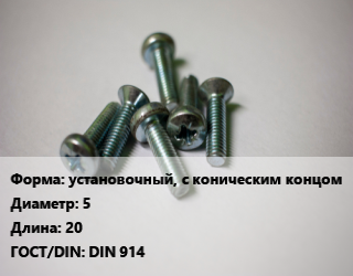 Винт установочный, с коническим концом 5х20 DIN 914, кг цена от 8.01 Р / кг, где купить, условия доставки в Могилеве и Могилёвской области