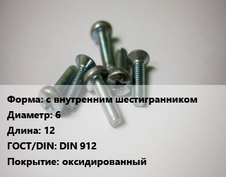 Винт с внутренним шестигранником 6х12 DIN 912 оксидированный, 12.9, цена за шт, кг цена от 10.8 Р / кг, где купить, условия доставки в Могилеве и Могилёвской области