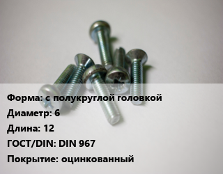 Винт с полукруглой головкой 6х12 DIN 967 оцинкованный, кг цена от 1 033 Р / кг, где купить, условия доставки в Могилеве и Могилёвской области