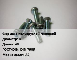 Винт с полукруглой головкой 8х40 DIN 7985 Сталь: А2, цена за шт, кг цена от 63 Р / кг, где купить, условия доставки в Могилеве и Могилёвской области