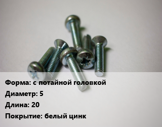 Винт с потайной головкой 5х20 белый цинк, чертеж 7811-7283, кг цена от 126.05 Р / кг, где купить, условия доставки в Могилеве и Могилёвской области