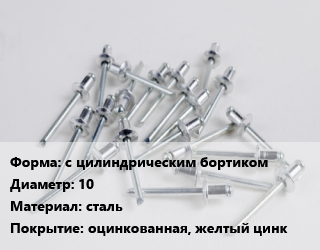 Заклепка с цилиндрическим бортиком 10 сталь оцинкованная, желтый цинк, упаковка 100 шт, с внутренней резьбой цена от 480.28 Р / шт, где купить, условия доставки в Могилеве и Могилёвской области