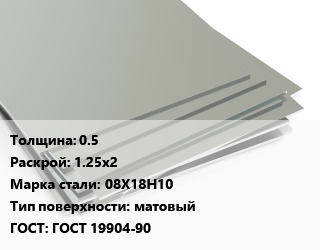 Лист нержавеющий 0.5 1.25х2 Сталь: 08Х18Н10 Тип:матовый ГОСТ 19904-90