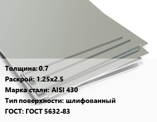 Лист нержавеющий 0.7 1.25х2.5 Сталь: AISI 430 Тип:шлифованный ГОСТ 5632-83, шт, х/к цена от 3 654 Р / т, где купить, условия доставки в Могилеве и Могилёвской области